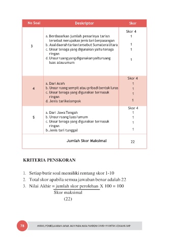 3. Nilai Akhir = jumlah skor perolehan X 100 = 100