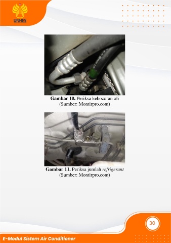 Gambar 10. Periksa kebocoran oli (Sumber: Montirpro.com) Gambar 11. Periksa jumlah refrigerant (Sumber: Montirpro.com)