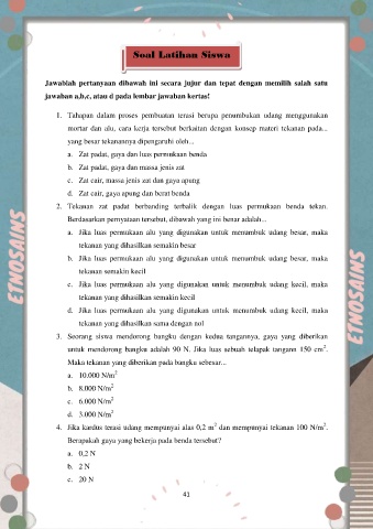 4. Jika kardus terasi udang mempunyai alas 0,2 m dan mempunyai tekanan 100 N/m .