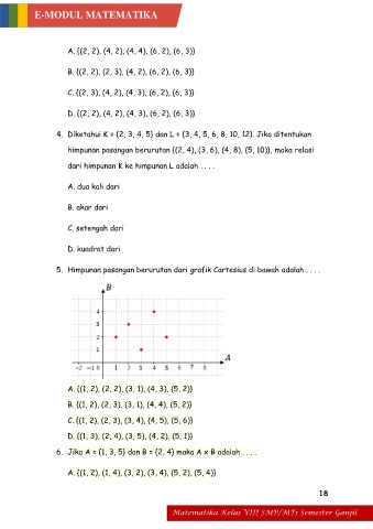 5. Himpunan pasangan berurutan dari grafik Cartesius di bawah adalah . . . .