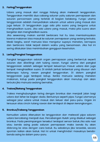Tenggorokan memiliki dua cabang saluran yaitu saluran pernapasan dan