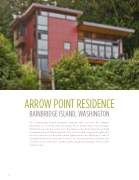 On a Bainbridge Island waterfront property that overlooks the Olympic Mountains is a contemporary yet natural home designed by Coates Design. Nestled in a wooded area, the home has many overlooks the Puget Sound and mountains beyond. With nearly half of the exterior walls composed of glass, the interior rooms are ooded with natural lighting and offer 360-degree views. A delightful and well-loved retreat for these art collectors and their children, this residence is one of the more notable, nely-designed sustainable homes in the Seattle region.