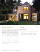 People spend nearly 80% of their lives in buildings. Coates Design Architects strives to address this reality by contrib- uting buildings and spaces to our communities that are provocative, healthful and inspiring. We approach every project as an opportunity to design something unique that re ects the needs and goals of the individual client and creates a meaningful sense of place. Our team seeks to reveal creative design strategies and technical innovation that are inspired by our clients, the site and the ecological context. We are collaborative by nature and we involve our customers early and often in the creative process. Our work re ects clean and elegant forms, well-proportioned spaces and natural daylighting combined with a “livable” touch which many designers overlook. We tailor innovative and livable design solutions through a customized approach for each and every client.