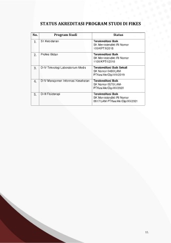 STATUS AKREDITASI PROGRAM STUDI DI FIKES