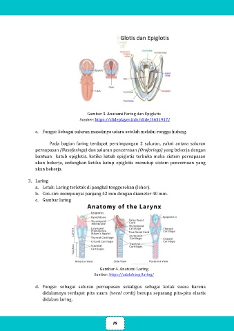d. Fungsi: sebagai saluran pernapasan sekaligus sebagai kotak suara karena