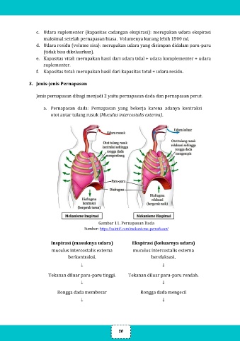 a. Pernapasan dada: Pernapasan yang bekerja karena adanya kontraksi