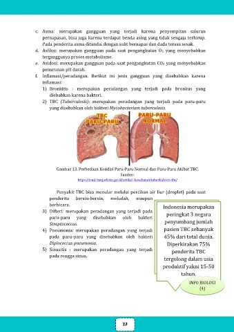 Gambar 13. Perbedaan Kondisi Paru-Paru Normal dan Paru-Paru Akibat TBC.