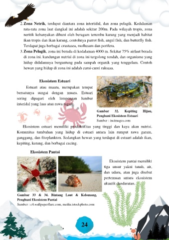 2. Zona Netrik, terdapat diantara zona intertidal, dan zona pelagik. Kedalaman