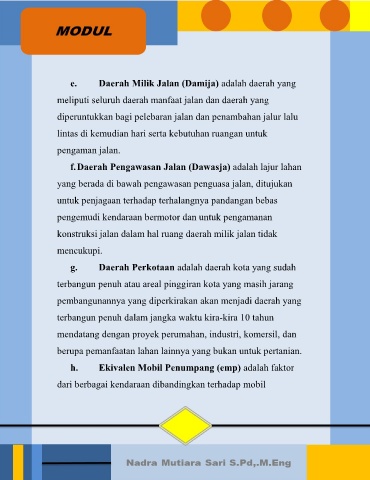 e. Daerah Milik Jalan (Damija) adalah daerah yang