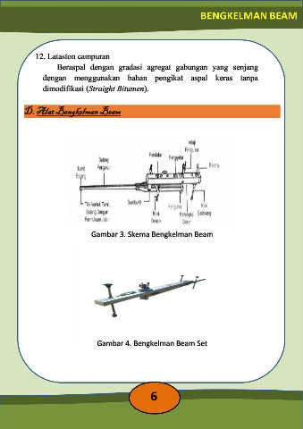12. Lataston campuran Beraspal dengan gradasi agregat gabungan yang senjang dengan menggunakan bahan pengikat aspal keras tanpa dimodifikasi (Straight Bitumen). D. Alat Bengkelman Beam Gambar 3. Skema Bengkelman Beam Gambar 4. Bengkelman Beam Set 6