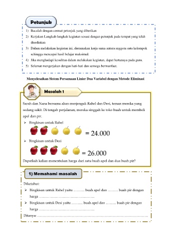 Dapatkah kalian menentukan harga dari satu buah apel dan dua buah pir?