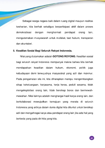 Nilai yang diutamakan adalah GOTONG ROYONG. Keadilan sosial