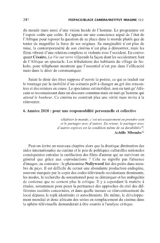 tres et des remises en cause. Le spectateur est mobilisé, non en tant qu’Afri-
