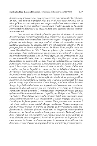 constate aujourd'hui que le cinéma africain, à côté de ce qu'on appelle le