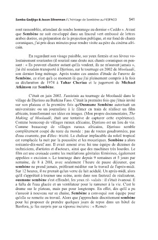 sur son plateau et la première fois qu'Ousmane Sembène autorisait un
