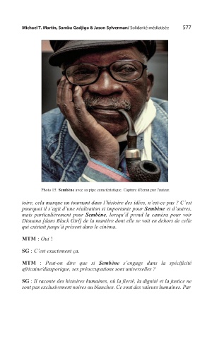Photo 15. Sembène avec sa pipe caractéristique. Capture d'écran par l'auteur.