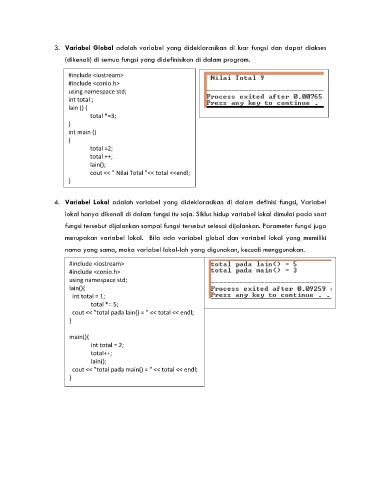 3. Variabel Global adalah variabel yang dideklarasikan di luar fungsi dan dapat diakses