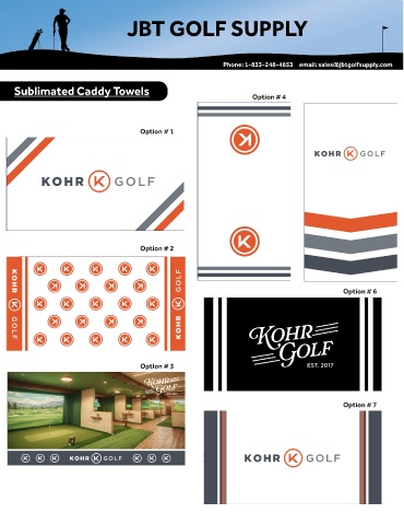 JBT GOLF SUPPLY JBT GOLF SUPPLY Phone: 1-833-248-4653 email: sales@jbtgolfsupply.com Sublimated Caddy Towels ker Option # 4 Option # 1 Option # 2 Option # 6 Option # 3 Option # 7