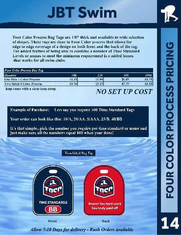 JBT Swim FOUR COLOR PROCESS PRICING 14 Allow 7-10 Days for delivery - Rush Orders available