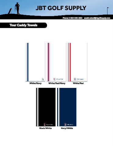 JBT GOLF SUPPLY JBT GOLF SUPPLY Phone: 1-833-248-4653 email: sales@jbtgolfsupply.com Tour Caddy Towels ker White/Navy White/Red/Navy White/Red Black/White Navy/White