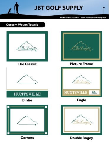JBT GOLF SUPPLY JBT GOLF SUPPLY Phone: 1-833-248-4653 email: sales@jbtgolfsupply.com ker Custom Woven Towels The Classic Picture Frame HUNTSVILLE HUNTSVILLE AL. Birdie Eagle Corners Double Bogey