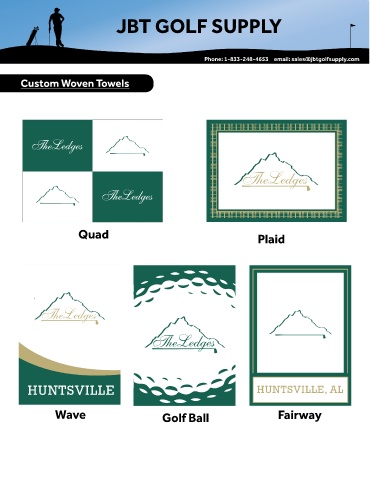 JBT GOLF SUPPLY JBT GOLF SUPPLY Phone: 1-833-248-4653 email: sales@jbtgolfsupply.com er er Custom Woven Towels ker k k Quad Plaid HUNTSVILLE HUNTSVILLE, AL Wave Golf Ball Fairway