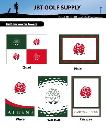 JBT GOLF SUPPLY JBT GOLF SUPPLY Phone: 1-833-248-4653 email: sales@jbtgolfsupply.com ker er er Custom Woven Towels k k Quad Plaid A T H E N S A T H E N S CANEBRAKE CLUB Wave Golf Ball Fairway CANEBRAKE CLUB