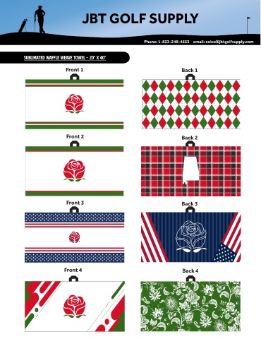 JBT GOLF SUPPLY JBT GOLF SUPPLY Phone: 1-833-248-4653 email: sales@jbtgolfsupply.com Sublimated Waffle Weave Towel - 20" x 40" Front 1 Back 1 Front 2 Back 2 Front 3 Back 3 A T H E N S Front 4 Back 4 CANEBRAKE CLUB A T H E N S , A L