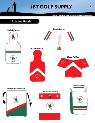 JBT GOLF SUPPLY JBT GOLF SUPPLY Phone: 1-833-248-4653 email: sales@jbtgolfsupply.com ker Stitched Goods Blade Putter Mallet Putter Mallet Putter GOLF CLUB CHRISTMAS LAKE Blade Putter Classic Shoe Bag Buckingham Valuable Bag Winston Valuable Bag