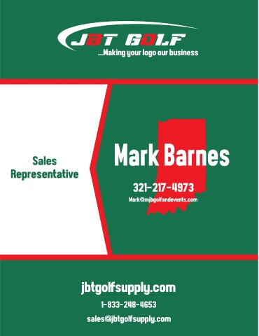 JBT Golf ...Making your logo our business Mark Barnes Sales Representative 321-217-4973 Mark@mjbgolfandevents.com jbtgolfsupply.com 1-833-248-4653 sales@jbtgolfsupply.com