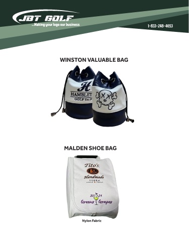 Golf JBT Golf ...Making your logo our business 1-833-248-4653 ...Making your logo our business WINSTON VALUABLE BAG MALDEN SHOE BAG Nylon Fabric
