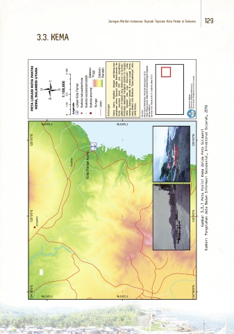 Jaringan Maritim Indonesia: Sejarah Toponim Kota Pantai di Sulawesi 129 3.3. KEMA Gambar 3.3.1 Peta Posisi Kema dalam Peta Sulawesi Sumber: Pengolahan data Badan Informasi Geospasial, Direktorat Sejarah, 2016