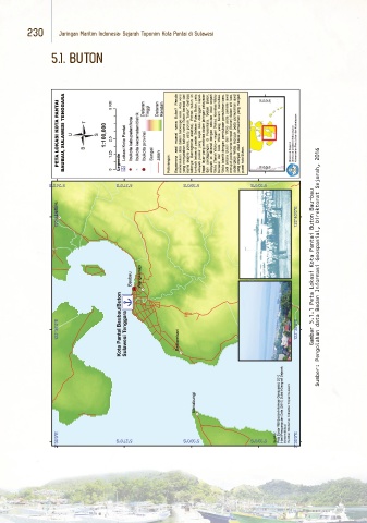 230 Jaringan Maritim Indonesia: Sejarah Toponim Kota Pantai di Sulawesi 5.1. BUTON Gambar 5.1.1 Peta Lokasi Kota Pantai Buton Bau-bau Sumber: Pengolahan data Badan Informasi Geospasial, Direktorat Sejarah, 2016