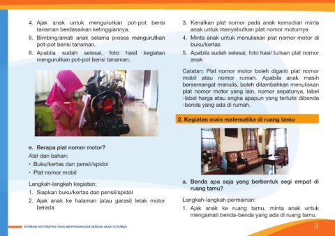 5. Bimbing/amati anak selama proses mengurutkan 4. Minta anak untuk menuliskan plat nomor motor di