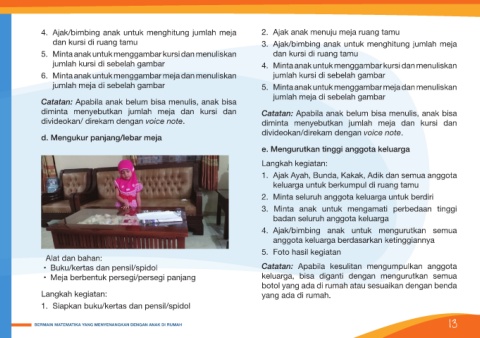 diminta menyebutkan jumlah meja dan kursi dan Catatan: Apabila anak belum bisa menulis, anak bisa