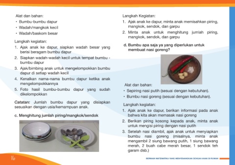 c. Menghitung jumlah piring/mangkok/sendok bahwa kita akan memasak nasi goreng
