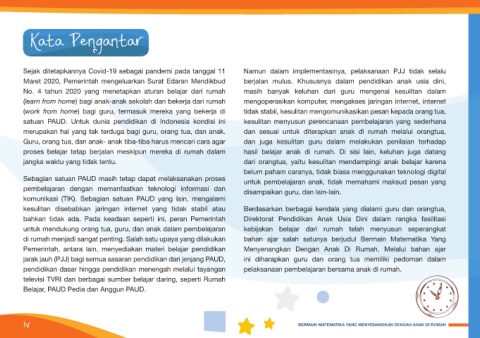 di rumah menjadi sangat penting. Salah satu upaya yang dilakukan bahan ajar salah satunya berjudul Bermain Matematika Yang