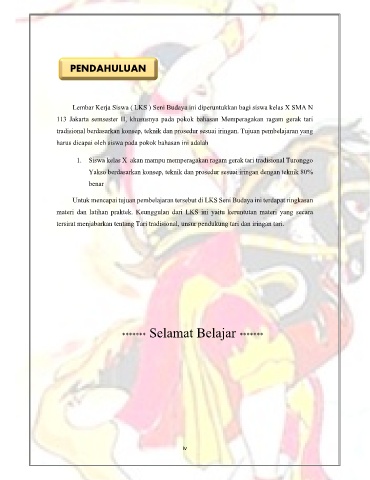 tradisional berdasarkan konsep, teknik dan prosedur sesuai iringan. Tujuan pembelajaran yang