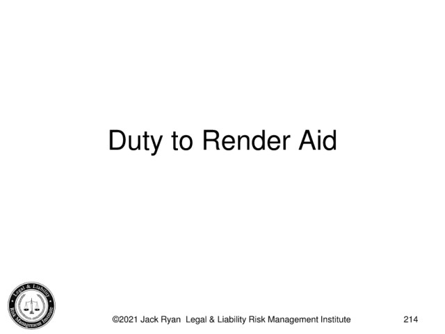 Duty to Render Aid ©2021 Jack Ryan Legal & Liability Risk Management Institute 214