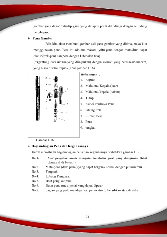 Untuk memahami bagian-bagian pena dan kegunaannya perhatikan gambar 1.17