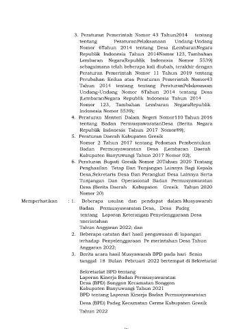 Desa (BPD) Padeg Kecamatan Cerme Kabupaten Gresik