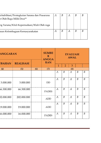 3. Bidang Kepemudaan dan Olah a. Pembangunan/Rehabilitasi/Peningkatan Sarana dan Prasarana A B A B B