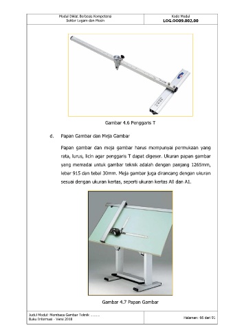 rata, lurus, licin agar penggaris T dapat digeser. Ukuran papan gambar