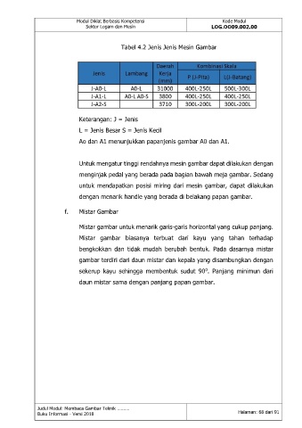 Tabel 4.2 Jenis Jenis Mesin Gambar