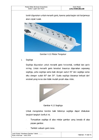 - Tempatkan segitiga di atas mistar gambar yang berada di atas