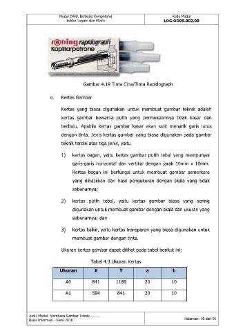 Ukuran kertas gambar dapat dilihat pada tabel berikut ini: