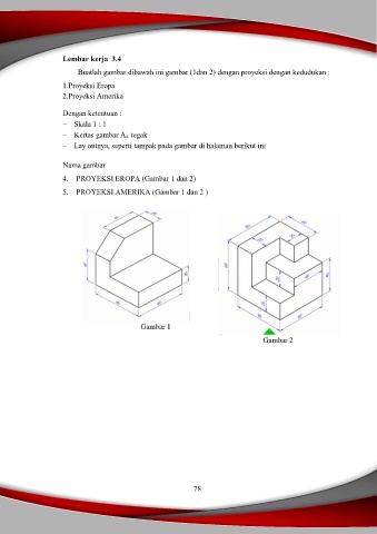 Buatlah gambar dibawah ini gambar (1dan 2) dengan proyeksi dengan kedudukan :