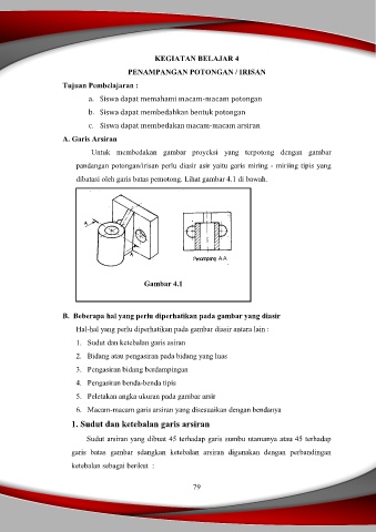 pandangan potongan/irisan perlu diasir asir yaitu garis miring - miriing tipis yang
