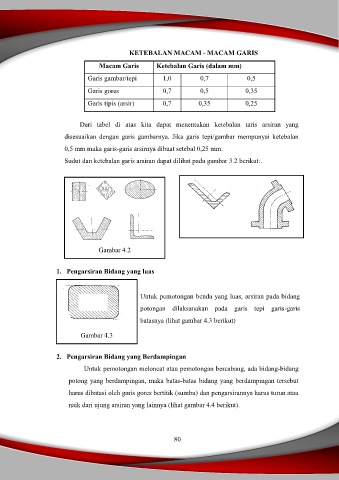 Sudut dan ketebalan garis arsiran dapat dilihat pada gambar 3.2 berikut:.