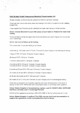 There was then some discussion about the testing of the Chilli III condoms for the stability